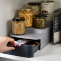 - Drawer is perfect for storing small items such as stock cubes, packets or bags
