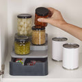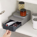 Organise the chaos and make more of the space in your kitchen cupboards with this compact tiered storage solution.