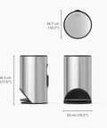 This stylish, circular bin has a large pedal that fits neatly within the footprint of the design, saving valuable floor space. Additionally, it features an integrated storage compartment at the back for liners, making them easy to access when needed. Finished in stylish stainless-steel, it has a capacity of 10L (2.6 US Gallons).