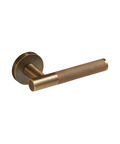 Santo Solid Brass Door Lever | Bronze & Castano Brown (Crazy Horse Leather)
