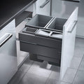 Features: | Designed to be withdrawn from the cabinet whilst the lid remains inside for use as shelf The bin is mounted to the internal sides of the carcase and incorporates concealed Nova Pro Smooth-Tec fully synchronised over-extension soft close runners |