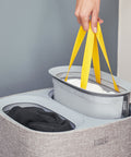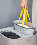 - 35-litre Hold-All™ laundry basket features strong carry handles, a moisture-resistant interior and folds flat for easy storage