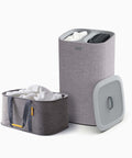 Make laundry day a breeze. This laundry baskets set includes a 60-litre Tota laundry basket with dual compartments for easy fabric separation, removable tote bags, and a lid. The accompanying 35-litre Hold-All™ basket features sturdy carry handles, a moisture-resistant interior, and a flat-folding design.