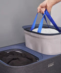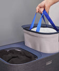 - Removable tote bags with handles makes carrying washing to the machine easy