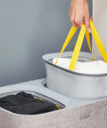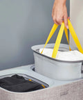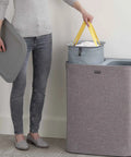 Ready to banish laundry-day blues? Meet Tota, our smart and stylish laundry basket. Designed with dual compartments and removable, easy-carry tote bags, Tota cuts down on the time and energy needed to separate clothes and carry heavy loads to the washing machine. It also looks great in the bedroom, bathroom or utility room.