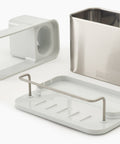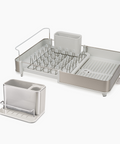 Create a sleek and coordinated sink space with this bundle. Featuring an expandable dish drainer and a stainless-steel sink tidy to keep washing-up essentials neat and organised.