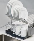 With draining space at a premium in most kitchens, this clever dish rack maximises the space available by utilising the vertical area above your drainer.