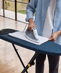 This compact and slimline blue ironing board comes with an advanced, multi-layer cover with DripShield™ Technology that's been designed to cope with large volumes of ironing or for use with steam generator irons.