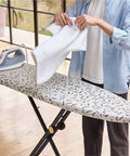 This easy-store ironing board comes with an advanced, multi-layer cover with DripShield™ Technology that's been designed to cope with large volumes of ironing or for use with steam generator irons.