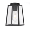 Cantena is a bold yet simple vintage outdoor pendant lamp. The tapered frame holds trapezoid clear glass and is suspended by a short rod with chain. The Cantena family is crafted in solid brass and finished in polished brass or brass painted in black. Available in 2 sizes, also as a wall lamp.