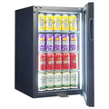 Reliable Triple Glazed Glass Quiet running Door Bar Fridge with lock, adjustable shelving, polished stainless interior and reversible door.
