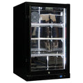 Quiet running under bench heated glass door bar fridge that stops condensation. Unit has brand parts that include a quality Schmick ECO electronic controller and quiet running Schmick rear and inner fans for reliable operation. *Unit is right hinged (handle on left).