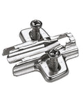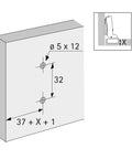 Cross Mounting Plate With Oblong Hole Height Adjustment, Nickel Plated, Hole Line 37 x 32 mm, With Euro Screws (For Drilling ø 5 x 12 mm), Distance 8.0 mm