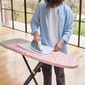 This 130cm ironing board offers a fast and simple setup, with seven adjustable height settings. When not in use, the board folds down for compact storage.