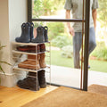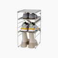 Boots, shoes, trainers – whatever your style, simply adjust to fit your collection. Really easy to assemble, the shelves clip onto the sturdy steel frame, while additional racks can be stacked on top of each other and screwed to the wall for more stability. This design stores up to four pairs of shoes.