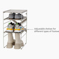 - Can fit a variety of sizes of footwear with sturdy, adjustable shelves.
