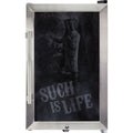 Ned Kelly 'Such Is Life' Designed Tropical Rated Glass Door Bar Fridge, right hinged, made especially for outdoor tropical alfresco areas in Australia.
