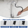 - Elegant high-arch spout with a pull-down function, combining sleek aesthetics with practical functionality.