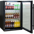 Classy Black 1 Door Alfresco Outdoor Bar Fridge. Unit is triple glazed and has heated glass to stop condensation, with lock, adjustable shelving, white led lights and a superb finish on this new stainless, this is a great seller at a great price.
