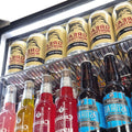 Quiet running low energy under bench front venting black glass door bar fridge. Unit has heated glass to stop condensation, the door is left hinged with lock and brand parts include a quality Schmick electronic controller and quiet running Schmick rear and inner fans for reliable operation.
