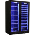 A stylish reliable upright quiet running black glass door matching beer and wine fridge with quality brand name parts and plenty of features. The slimline door frame and soft blue LED lighting makes it a real showpiece for any entertaining area.