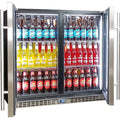 Quality low energy quiet running 2 door glass front stainless bar fridge with special heated glass, polished stainless interior, blue/white led lighting, locks and quality parts. Designed to be reliable and functional the Schmick range is now our most popular seller.
