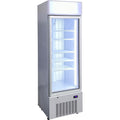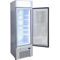 Schmick Upright 1 Door glass door freezer with heated glass to stop condensation, lockable doors, electronic controller, 6 x HD adjustable shelves, led lighting, self closing lockable doors, quality parts and lightbox for branding options.