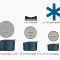 Space Folding Handle Ceramic Non-stick 3-piece Blue Saucepan Set