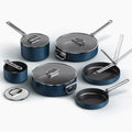 Space Folding Handle Ceramic Non-stick 6-piece Blue Cookware Set