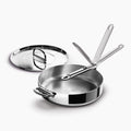 This 28cm stainless-steel sauté pan is built for versatility, featuring a durable body and a folding helper handle for easier lifting. Comes with a stainless-steel lid that also folds for space-saving storage.