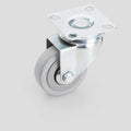 Constructed with a durable housing and either rubber or nylon wheel, this castor provides quiet rolling and easy manoeuvrability on hard floors or low-pile carpet. Optional models include top plate mounting and brake functionality for added control.