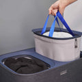 - Removable tote bags with handles makes carrying washing to the machine easy