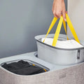 - Removable tote bags with handles makes carrying washing to the machine easy