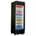 Quiet Running Black Upright Triple Glazed Bar Fridge with plenty of shelving adjustments, led lighting, lock and castor wheels. A great product for your entertaining area, man cave or theater room.